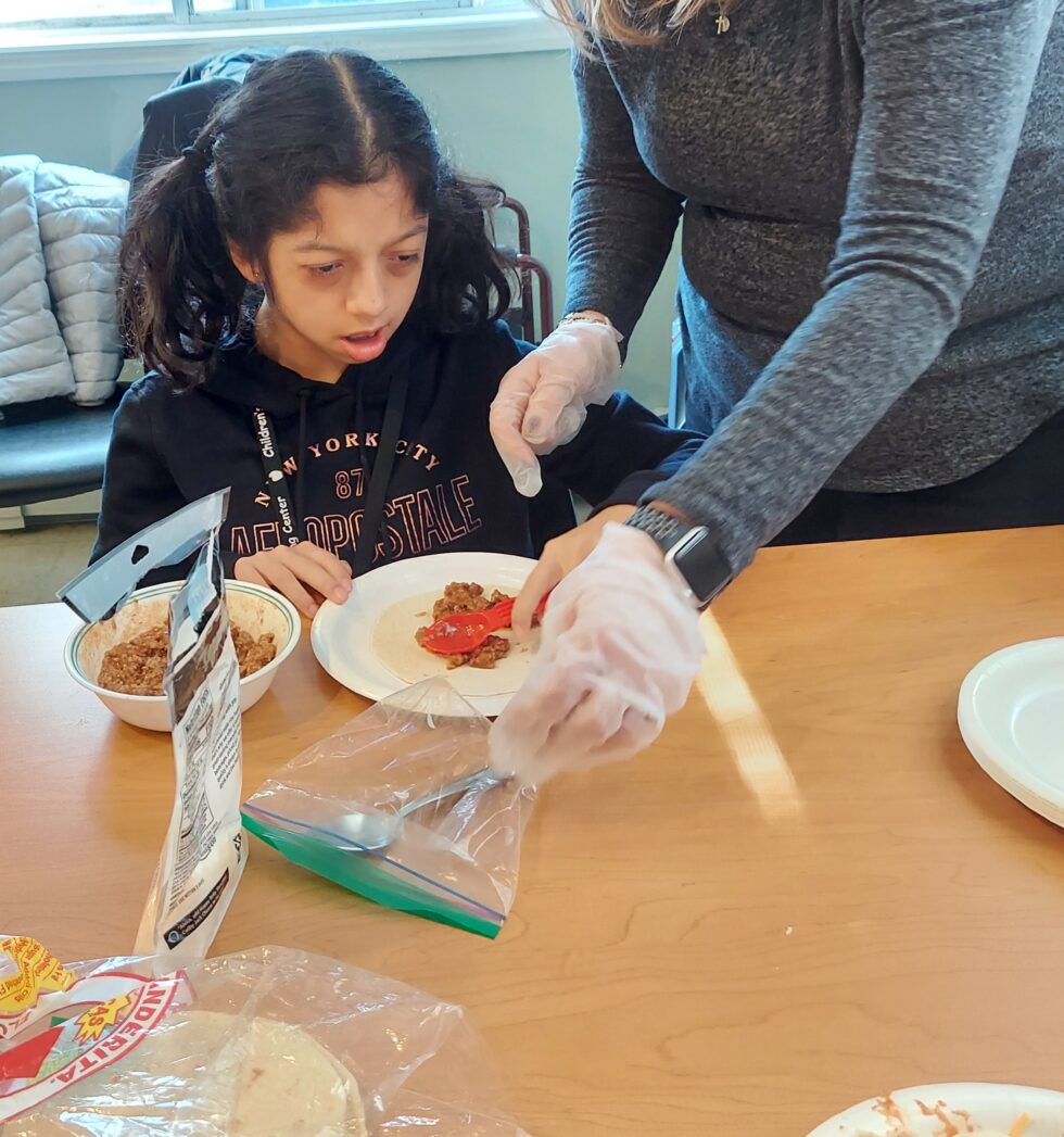 Students from the Children’s Learning Center, Class 536 had fun making enchiladas at the Activities of Daily Living (ADL) site on our campus known as Marilyn’s House. Miss Christine, their teacher shared that in class they are learning about transportation and have been talking about Mexico! Miss Kathy from the Occupational Therapy department accompanied the group and helped with the cooking! Everyone commented that their cooking session was fun and the end result, delicious! YUM!