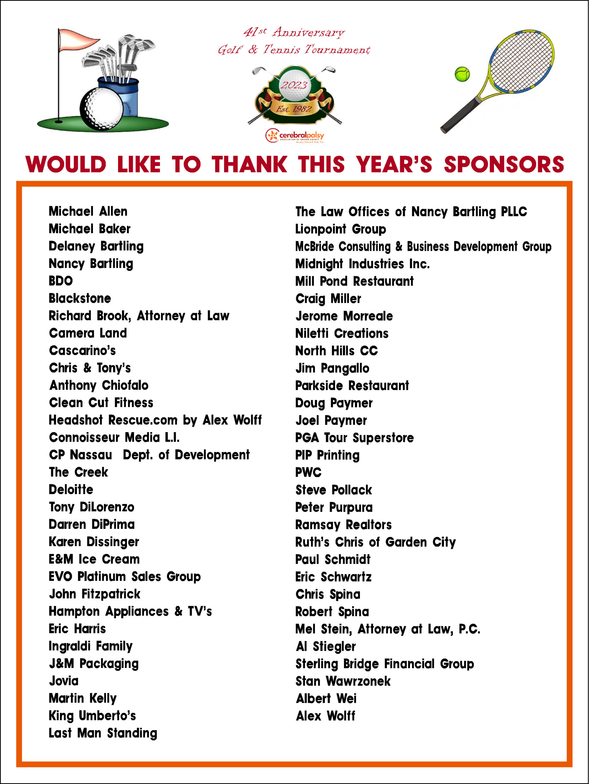 The 41st Annual Golf and Tennis Tournament to Benefit CP Nassau: A Great Success