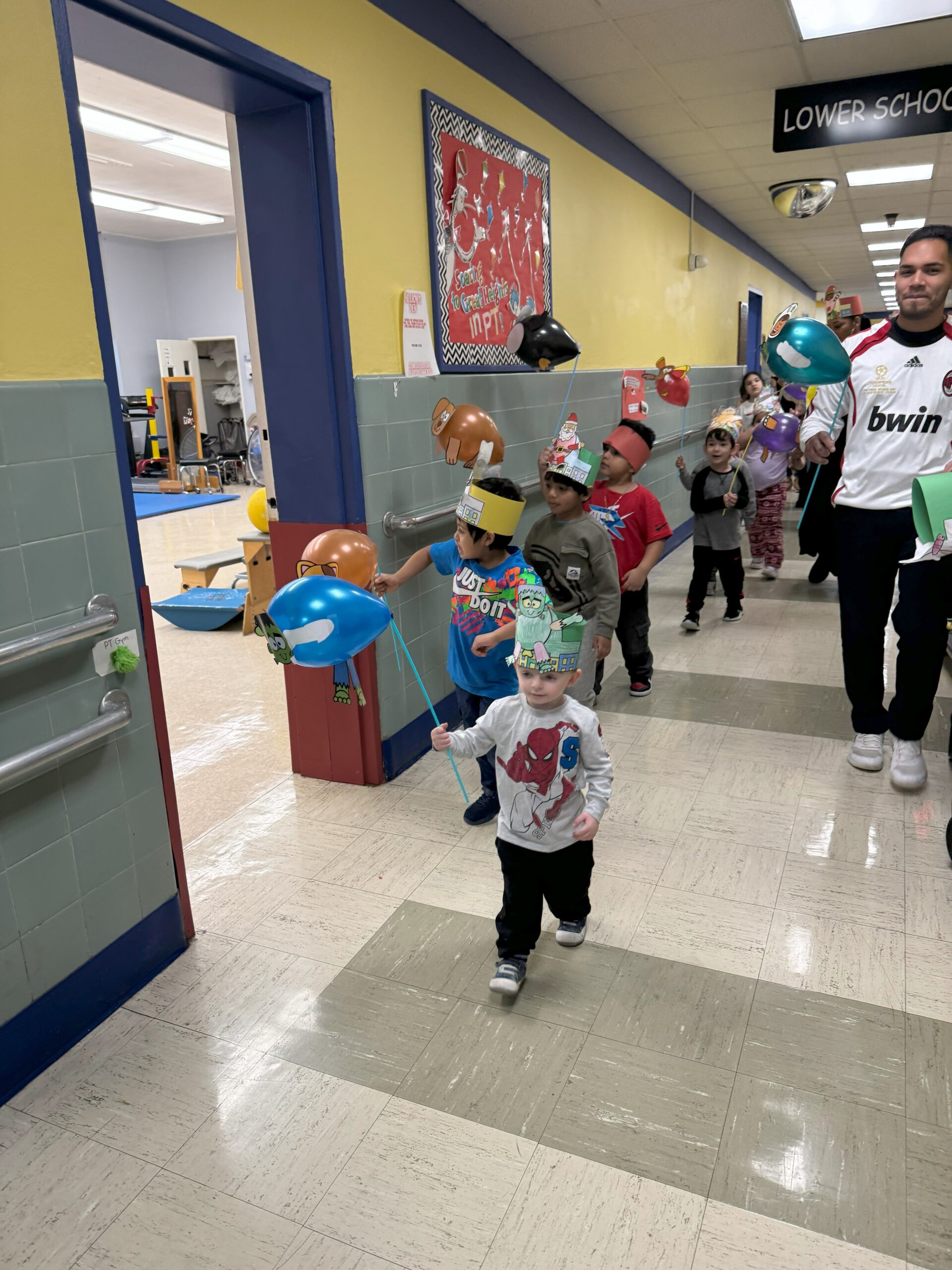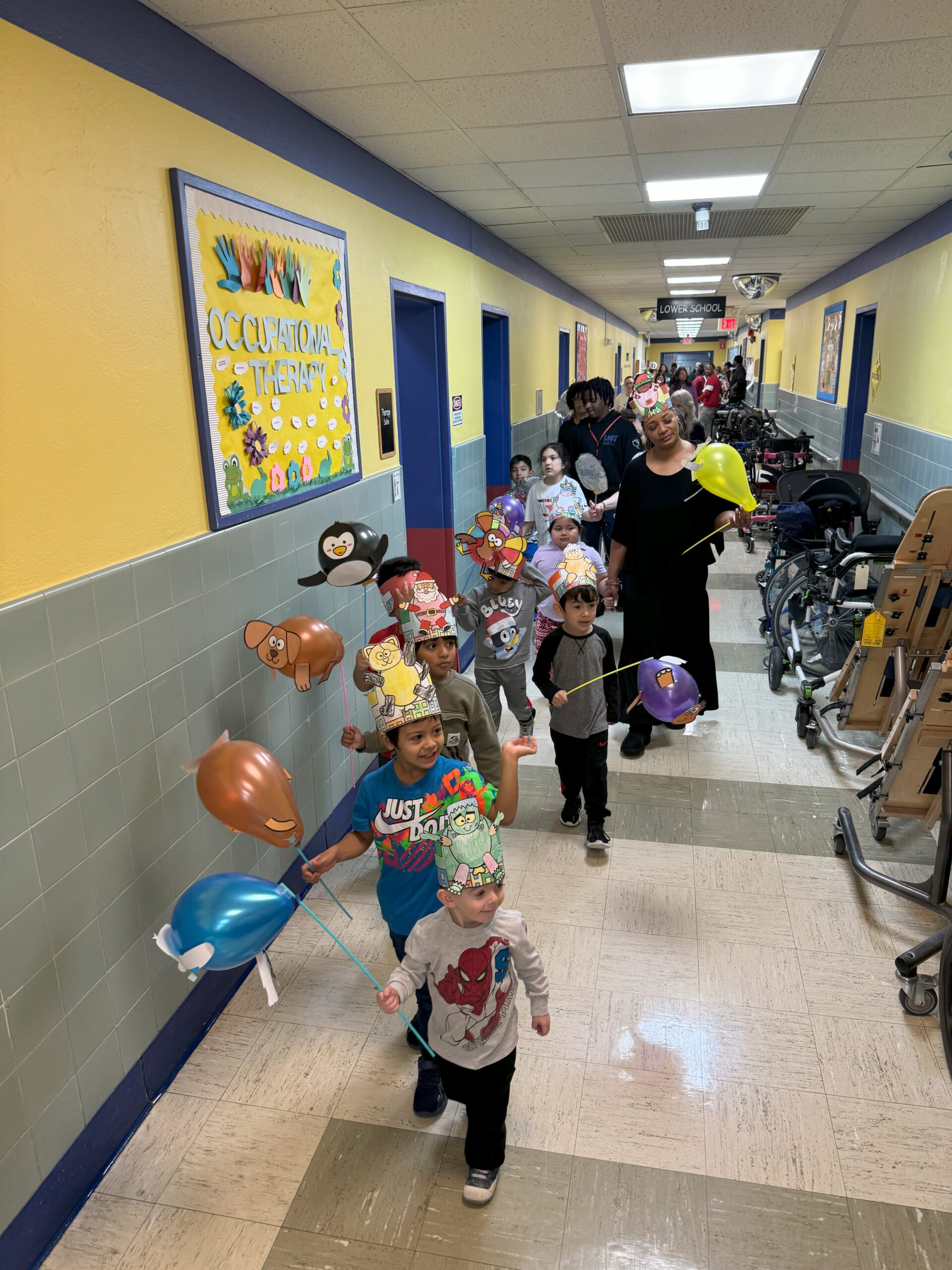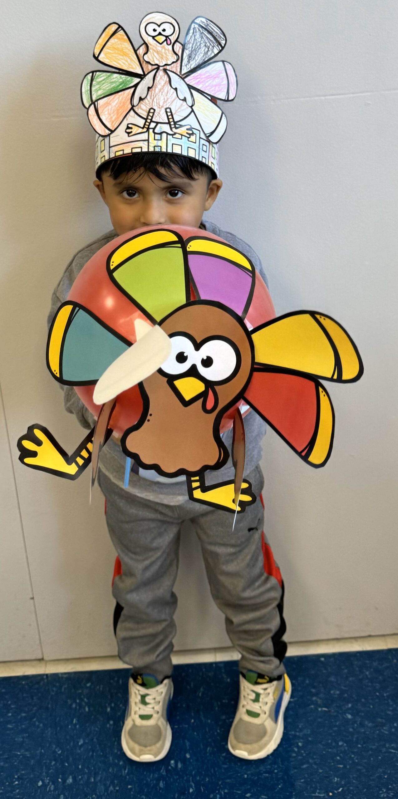Teachers and staff got creative and offered a myriad of choices to our terrific preschoolers to make balloon characters for their very own Thanksgiving Celebration parade! The fun started with a simple paper craft activity where the students added color, and staff did the paper trimming. The finished product was so fun and ready for a festive march down the halls of our school!
