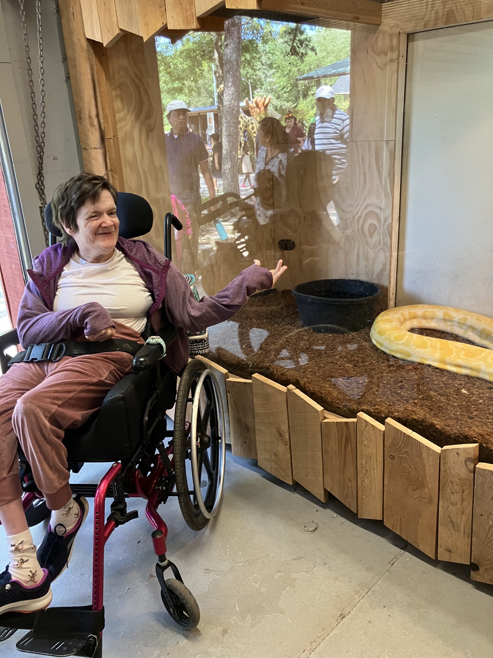 After the ride, the group visited the reptile exhibit and Sheila could not get over how HUGE the python was, she loved it! The group went to the gift shop, and each chose a souvenir to remember the trip. After enjoying lunch at the park, the group prepared for the ride home. When they arrived about 6 pm, the residents were tired but happy and talked non-stop about the trip. So Charkera’s vision of making this trip happen came true and she expressed whole-hearted gratitude to eh staff members who worked tirelessly to make this experience special and unforgettable.