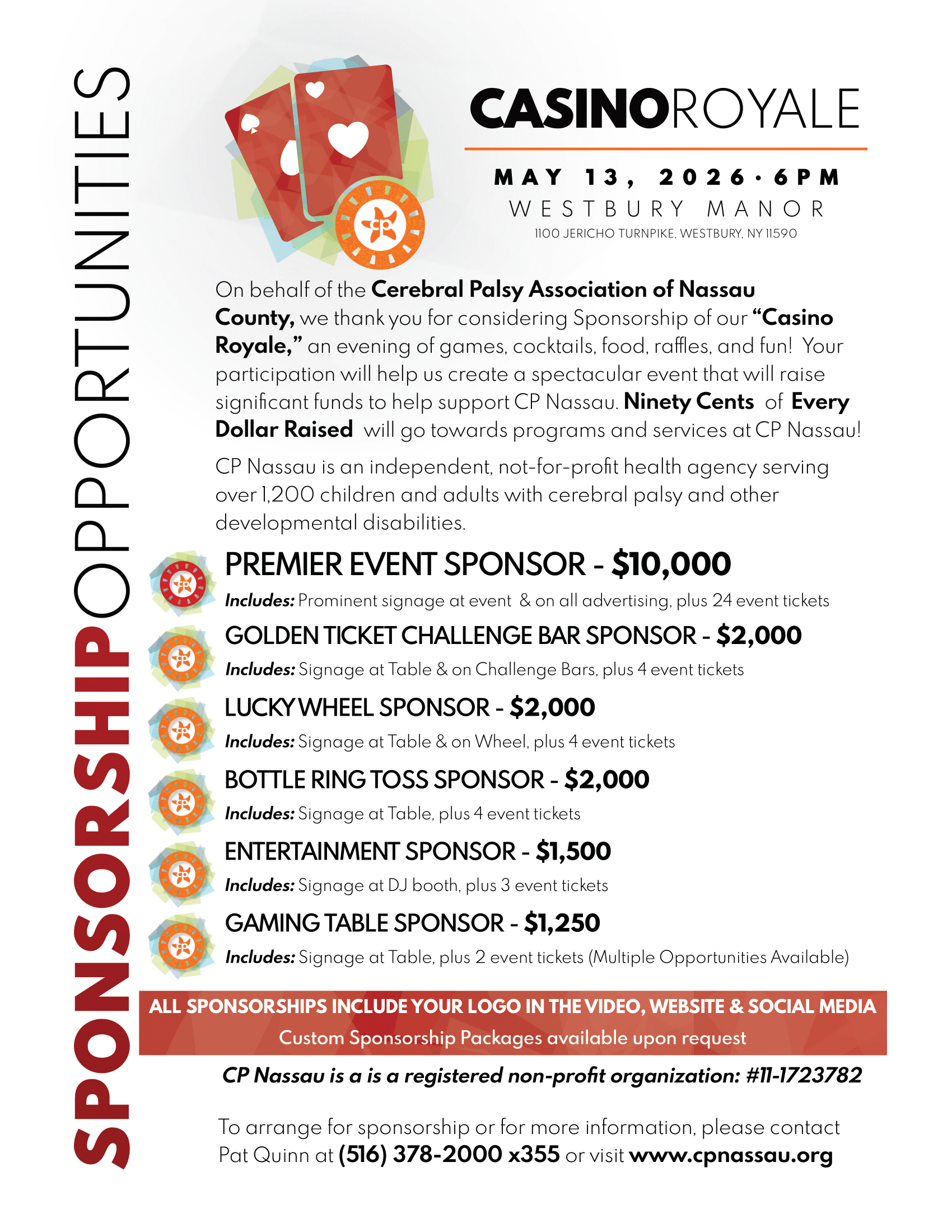 Sponsorships are the lifeblood of our community events at the Cerebral Palsy Association of Nassau County, which in turn make our full spectrum of programs and services possible. To find out more about being a corporate or individual sponsor for an upcoming event, please call Pat Quinn at 516-378-2000 ext.355 or email us. And thank you!